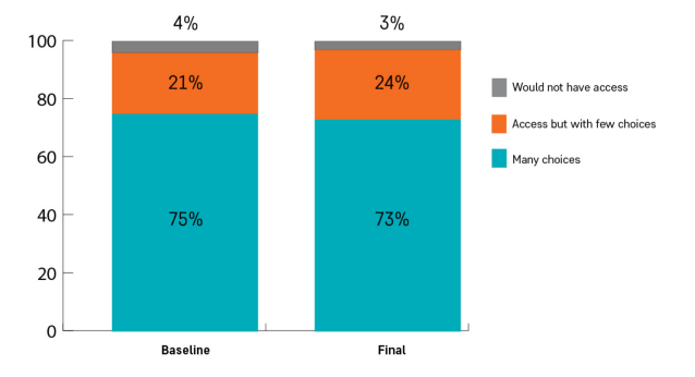 Finally, we sought to explore the “graduation” of digital credit customers to traditional bank loans. While Tala reports positive credit history to Kenya’s Credit Reporting Bureau (CRB) to help our customers build their public credit record, we were not able to discern over two months whether customers were able to leverage Tala’s credit history to obtain loans from banks, or if banks are the ideal measure of financial access in Kenya. Explaining part of the declining reliance on banks for credit, our interviews revealed that customers continue to strongly distrust banks, citing hidden fees, lack of flexibility, and aggressiveness when unable to repay on-time. Baseline Survey Final Survey