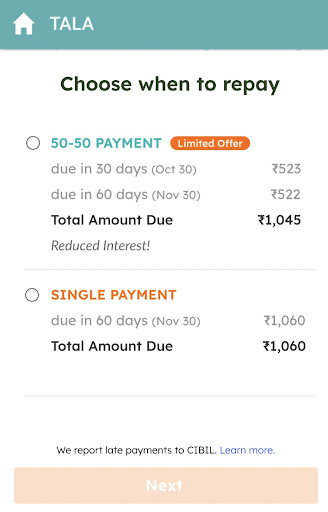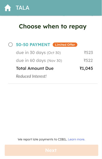 Tala’s Installment MVP feature was a test to understand the adoption of installment products among our India customer base. Since our current loan offering only had a one-time repayment option (control version), we wanted to see how customers would respond to multiple payment options (aka installments) and see if this flexibility helps them to repay the loan on time.