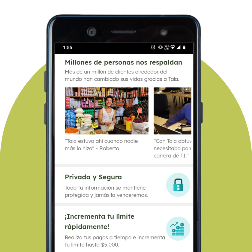 Únete a más de 12 millones de clientes en el mundo que confían en Tala.